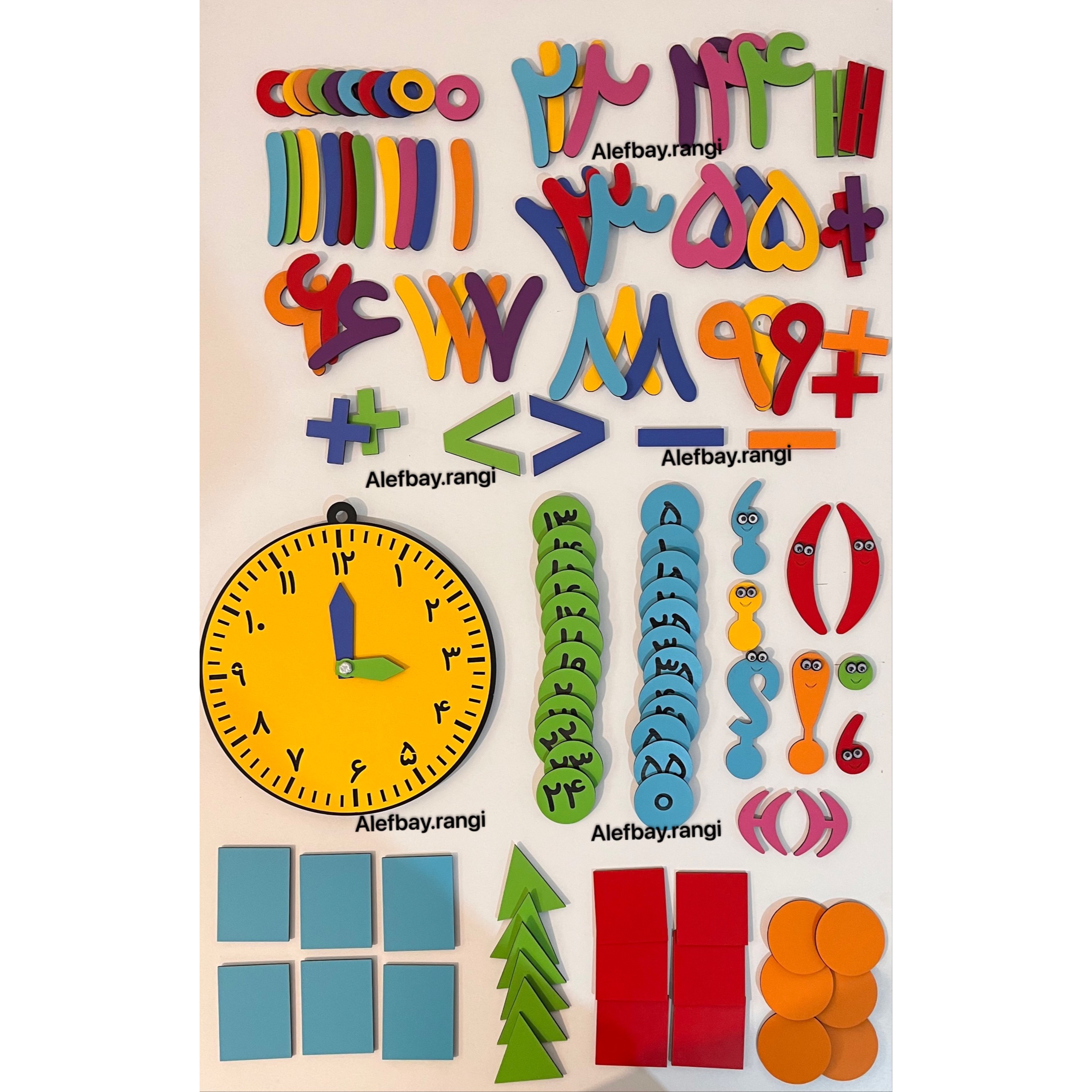 این پک شامل محتویات داخل اسلاید هاست ازجمله سکه،چوب خط،کوییزنر،ماشین،چرتکه،ساعت و اعدادش،علائم نگارشی ،اعداد و علائم ریاضی،مربع رنگی،اشکال۲۴تکه هندسی،محور و اعدادش،اعداد دیجیتالی و انگلیسی.همه وسایل ساخته شده باچوب ام دی اف است پشت کارها مگنتی شده است و تماما قابل دید در کلاس پرجمعیت میباشد.